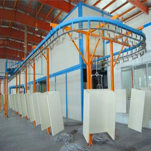 1、喷粉线:上输送链——喷粉——烘干(10min、180℃-220℃)——冷却——下件