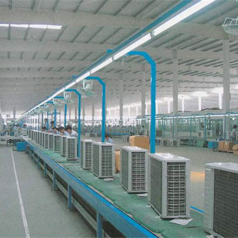 家用电器总装线是依据倍速链条经过连体电机传动形成的输送设备,通过阻挡、光焰开关形成的一定节拍经PLC控制的自动组装设备,主要用于家电产品行业,随着工业自动化的不断深入,这种形式的线体也加入工业机械手、龙门架等配套设备,使生产组装更加的节省人力和更加的高效率。