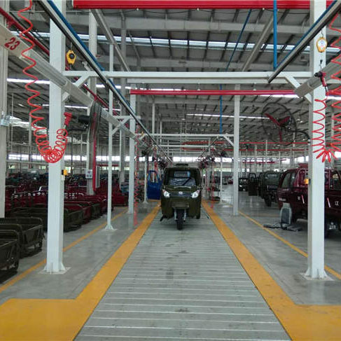 三轮车装配线采用链板拖牵工件做平面传送运动,来达到生产工艺目的,是整车制造装配厂商必不可少的总装设备。总装流水线配有照明、风扇、工装等标准配置。可根据产量对线体的长度进行选择。